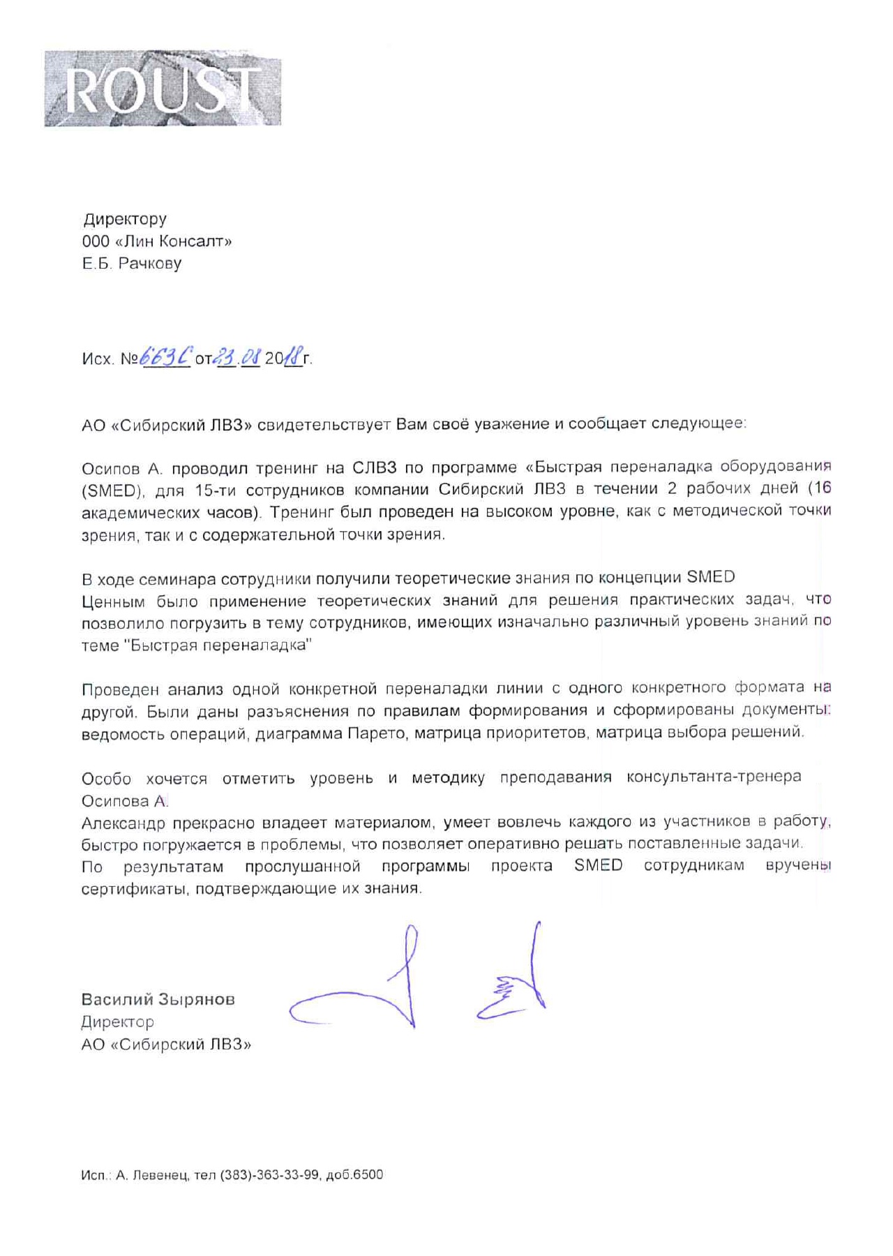 Видео отзывы клиентов консалтинговой компании «Лин Консалт» по результатам совместно реализованных проектов по повышению операционной эффективности.
