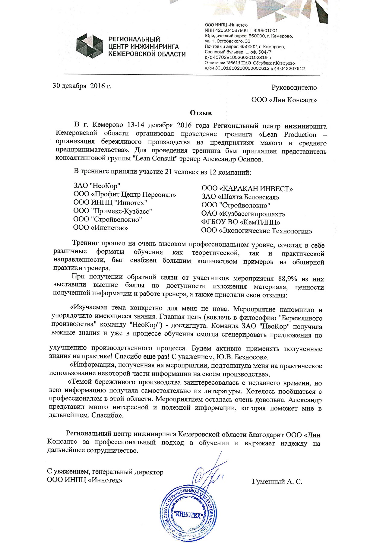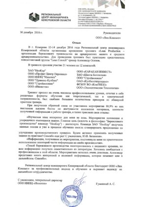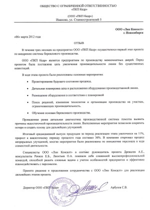 Видео отзывы клиентов консалтинговой компании «Лин Консалт» по результатам совместно реализованных проектов по повышению операционной эффективности.