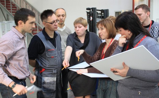 В октябре 2013г. консалтинговая группа "Лин Консалт" провела 5-ти дневный практический OJT семинар-тренинг "Картирование потоков создания ценности (VSM)" для компаний - партнеров "Рото Франк" (Германия - Россия) и "Коллини" (Австрия - Россия).