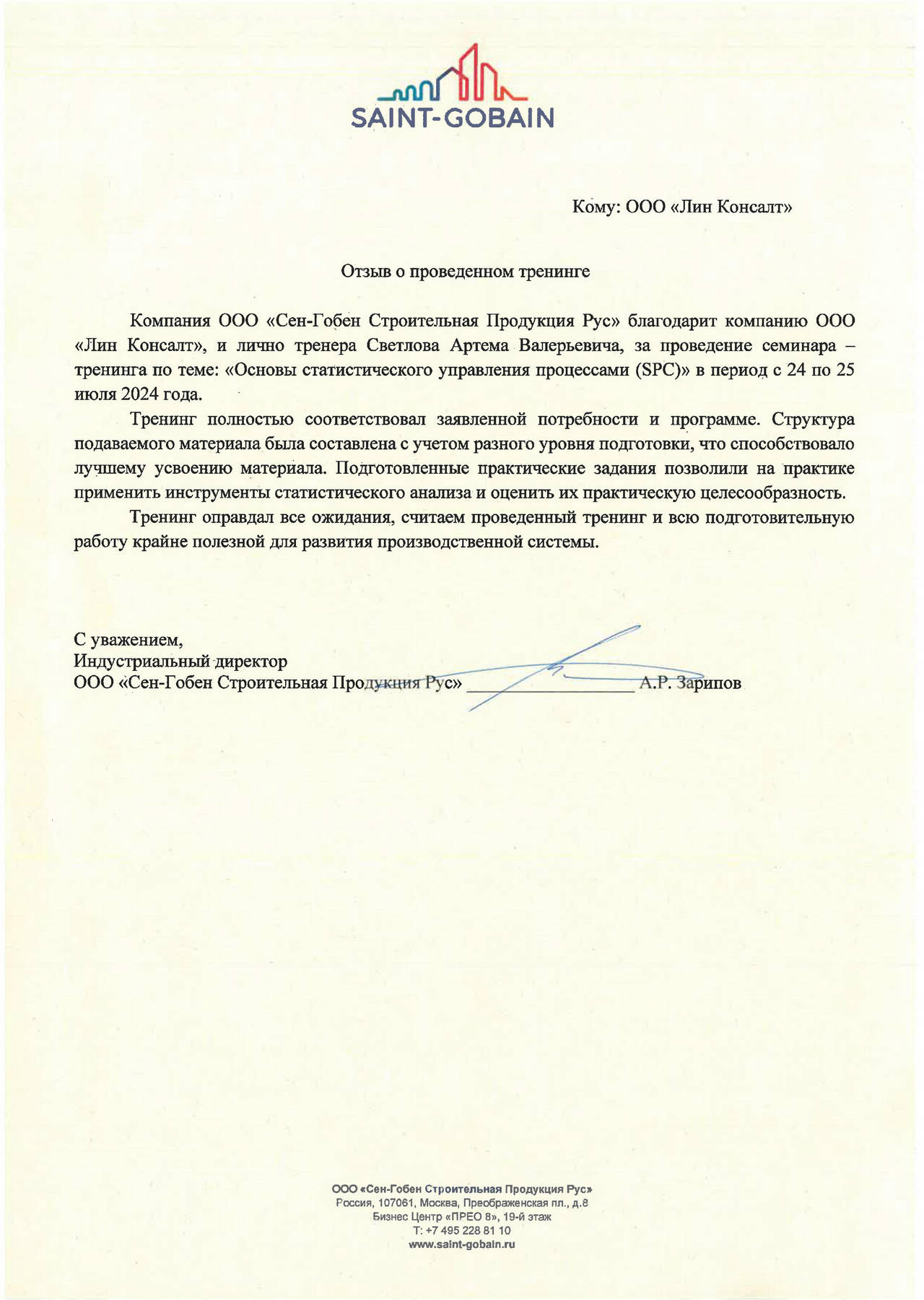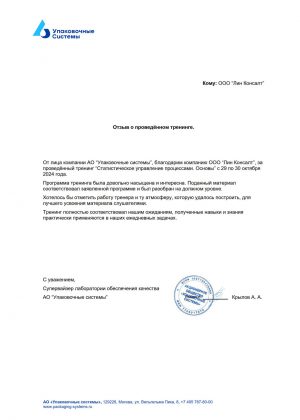 16–17 июня 2025 года группа «Лин Консалт» провела очередной практический семинар-тренинг «Основы статистического управления процессами (SPC)» для сотрудников ООО «Сен-Гобен Строительная Продукция Рус» в городе Егорьевск.