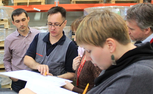 Далее начинается практическая работа по картированию текущего состояния выбранного процесса. Участники под руководством тренера картируют материальные и информационные потоки в процессе.